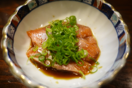 さて、ちょっと前の話ですがえび一さんでとってもおいしい広島の食材をいただくことができました〜!メニューを見ていて見つけたのですが、なんと広島サーモンのハラス!いままで広島サーモンはお刺身でいただいておりましたが、ハラスはまだ食べたことがない!ということで、すぐに注文させてもらいました〜!