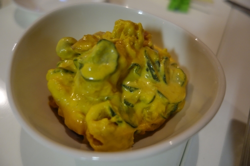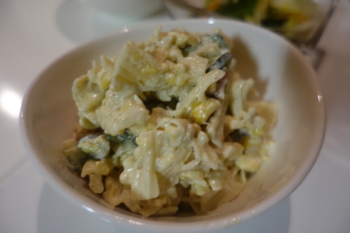 マカロニサラダ、かぼちゃサラダ、中華風春雨、わさび風味春雨が登場しました!どれもおいしそう!こういう一品料理が豊富なのがとってもうれしいですね〜!大好物のマカロニサラダから!おいしい〜〜〜!どれもお酒にあうんですよね〜!