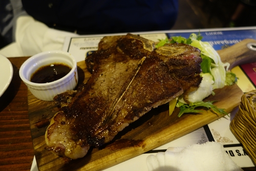 ムール貝やモッツァレラとトマトをいただきながら、なんともう一枚ステーキを頼んでしまいました〜!もう完全によっぱらっています!笑。