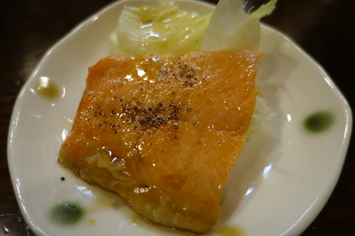 ここで広島サーモンのバター焼きをお願いしました〜!最近広島サーモンをいただく機会が多いのですが、普通のサーモンよりもしっとりしていておいしいと思います。なかなかやりますよ!ぜひ試してみてください!