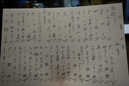 この日もラーメンがメニューにあったのですが、、、な、な、なんと、、気付いていたのに帰り際になって酔っ払って注文を忘れてしまっていたんです!しかも二回も連続で、、、とほほ。そんなことにならないように次回こそは!