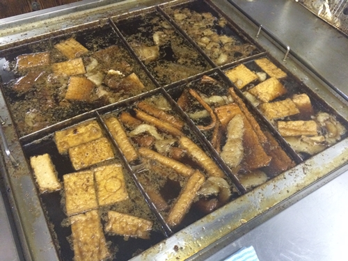 奥のテーブル席の横におでんコーナーがありました!おいしそうなおでん!あつあげとこんにゃくをいただきます!
