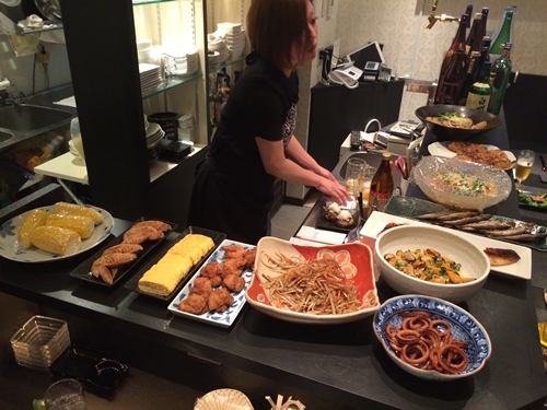 さて、先日大阪からきた先輩をえび一さんでおもてなしをしていると後輩君から電話がありまして、一緒に飲むことになりました。移動して言われたお店に伺ってみると、、、ビルの二階でした。あれれ、、、スタンドとか、スナックなのかな、、と思って入ってみると、、なんとおばんざいがいただけるお店でした!お店の名前はJOIEさんです。ジョアとよむそうです。