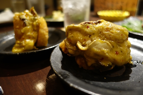 メニューにあったエビタルタルですね!気になっていたのでお願いしました!すると目の前の焼き台に大きなエビがどどーんと登場しました!えええ〜〜〜!本気のエビですか!うれしいですね〜!焼いていくとだんだんと赤みをおびてきてとってもおいしそう!そこへ自家製のタルタルソースをかけて、、、、エビタルタルが登場しました!