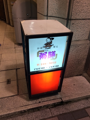 さて、先日は久々にこちらのお店にお邪魔してきました〜!お店の名前は粥膳さんです。飲んだ後の〆においしいお粥をいただける体に優しいお店なんですよ〜!最近ちょっぴりご無沙汰しておりました〜!笑。