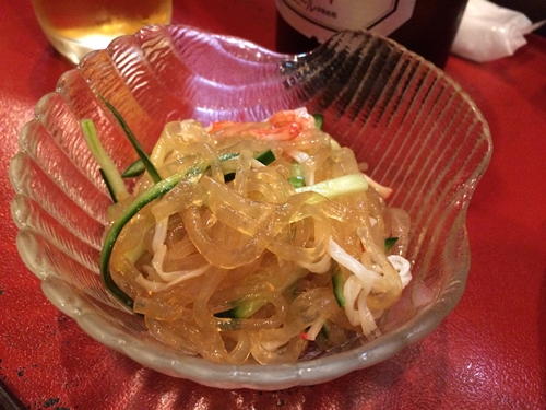 いろんなお話をしながら、おばんざいをいただきます!まずははるさめから!これがまたピリ辛でとってもおいしんですよね〜!ビールにほんとよく合うんですよ〜!