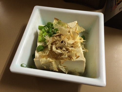 おかずを温めていただいてさっそくいただきます!まずは冷奴から!私はひややっこ好きですからね〜!