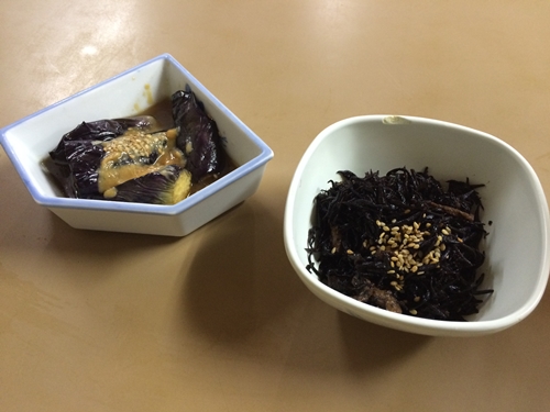 つづいてひじきとなすびをいただきました〜!夏はやっぱりなすびですよね〜!ひじきもしっかり味がついてておいしい〜!
