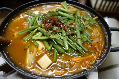 最後はホルモン鍋をお願いしました!たっぷりの野菜とホルモンが入っています!これまたと〜ってもおいしい〜〜〜!最後は韓国風の麺を入れてしめましたよ〜!