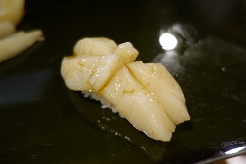 帆立が登場しました!ぷりっぷりのホタテがこれまたおいしいのなんのって!大将さすがですね〜!北海道のホタテと比べてみたいです!
