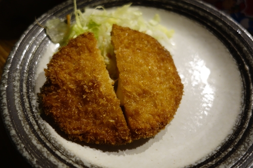 まずはハムカツをいただきました!目の前で揚げたてを供してくれますよ〜!ソースをかけていただくと、、うまい!いいですね〜!