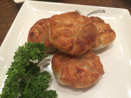 焼き餃子が登場しました!想像していた焼き餃子とは違い本場でよく見る形の餃子でした〜!ニラがたっぷり入っていてとってもおいしい〜〜〜!すごいですね!
