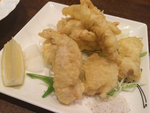 つづいて白肉の天ぷらが登場しました!この白肉がこれまたおいしいのなんのって!ミノ自体もおいしい〜!
