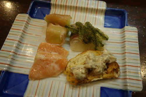この日は広島サーモンがはいっていましたね〜!生ハムメロンも!おおお!これはおいしそうです〜!いただくと、、超おいしい〜!やっぱりえび一さんは最高ですね!