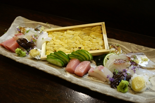 つづいてお刺身を盛り合わせていただきました〜!中央のはどどーんと生うにが板一枚も!えええ!こんなに食べれるかな〜、、、でもおいしいから問題なく食べれますよね!笑。そのほかのお魚たちもとってもおいしい!まぐろはいつもながら最高においしかったですよ!