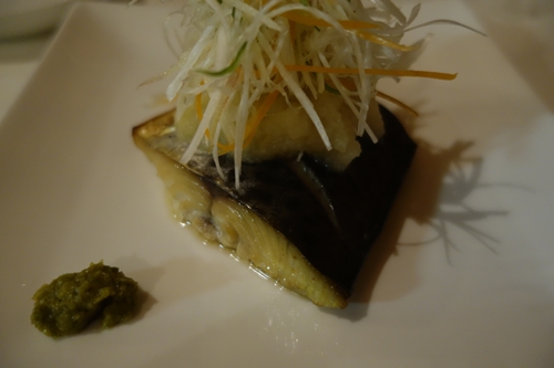 お魚はさわらの漬けだれ焼きにしました〜!漬けだれ焼きっていうネーミングにひかれましたね〜!ネギたっぷり大根おろしたっぷりの最高においしいさわらでしたよ〜!