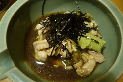 霧島鶏の鶏わさをいただきました!霧島鶏というブランド鶏なんでしょうね〜。お肉自体に味があってとってもおいしいです〜!味付けの濃さもほどよいですね〜!本当においしく炊けています!
