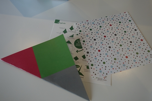 一階でチケットを購入するさいにおりづる広場にあるおりづるの壁におりづるを加えてみませんか?とお誘いいただいていたのでとりあえず詳しくはわからなかったのですが行ってみることに。チケットをカウンターで見せると、折り紙をくださいました。