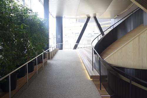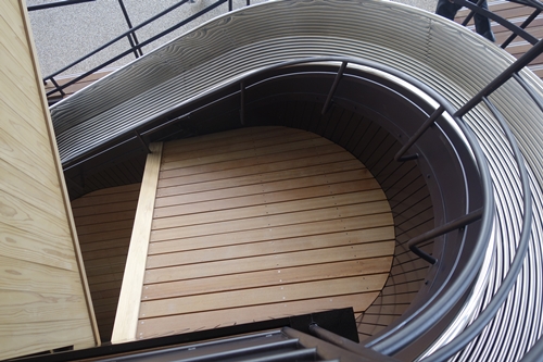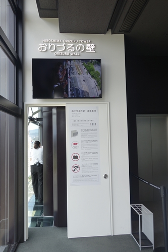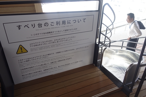 おりづる広場を後にしてエレベータでおりようかなとおもったら、なんとスロープを使って歩いて降りれると教えていただきました。せっかくなので歩いておりることに!さらになんと滑り台がついていてすべっておりることも可能なんですよ!お子さまとか喜びそうですね〜!