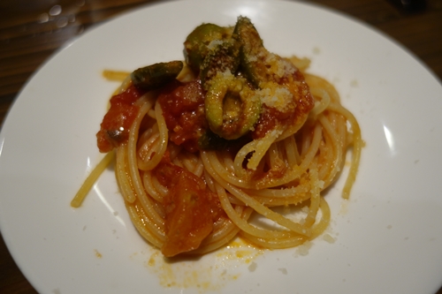 そしてやっぱり最後はパスタですよね〜!ということでイタリアのパスタといえばプッタネスカでしょう!いただいてみると、、、アルデンテ〜のトマトソースおいしいの〜〜で大満足!