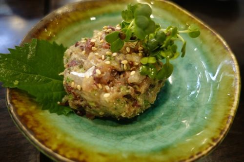 つづいてあじのなめろうを!たっぷり出していただきました!この気前の良さも人気の秘訣ですね〜!おいしいですよ〜!