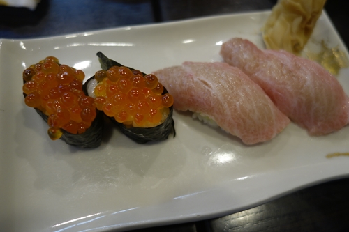 ここでお寿司を一人前!きゃ〜〜おいしい〜〜〜!おいしかったので追加でトロといくら〜!