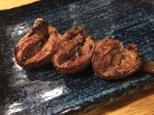 つづいてはな串さん一押しの朝引ハツが登場しました!新鮮そのもののハツをパクリといただいちゃいます!おおおおお!おいしいですね〜!食感がもう元気そのもの!超おいしいです〜!