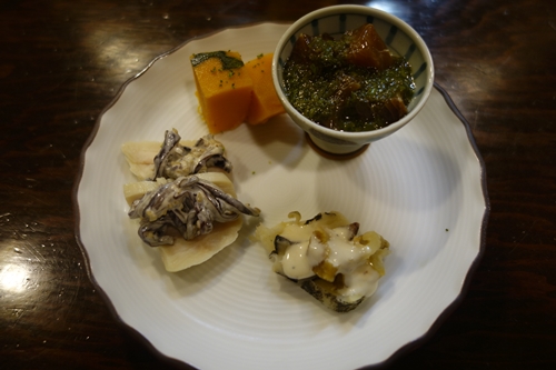 ということで、この日も生ビールをいただきながら先付をいただきます!かぼちゃがみにしみます〜。おいしい〜〜〜!あっ、、深夜食堂的には瓶ビールか!熱燗か!と思いながらも生ビールをおかわりします。てへ。