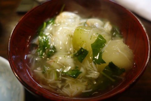 冬瓜かにあんかけをお願いしました!えび一さんのあんかけがこれが相当おいしいんですよ〜!冬瓜の歯ごたえもほどよく、かにに風味がたまりません!