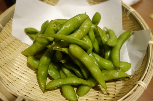 メニューをみながらいろいろと注文してみました!まずは枝豆が登場しました!ほどよい塩加減ですね〜!