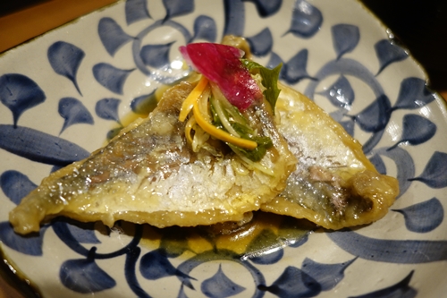 そしてまさかの高津川の天然鮎が!なかなかとれない高津川の鮎!いい色に焼けていますよ!いただくと、、、おいしい!ほんの少しするコケの香りがたまりませんね〜!