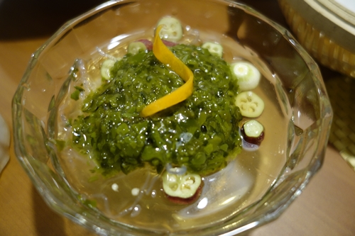 めかぶととろろとオクラの三杯酢をいただきました!とっても体によさそうですね〜!さっぱりしておいしいです〜!