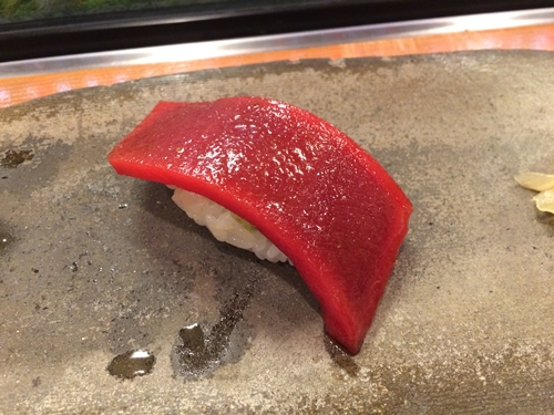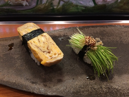 玉子と芽ネギをいただいたあとに、アナゴの塩と赤身をいただいて今日のところは終了!