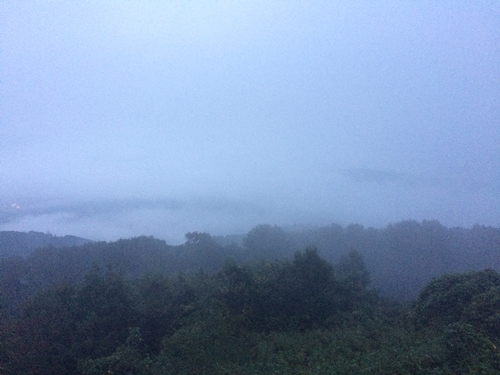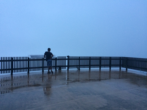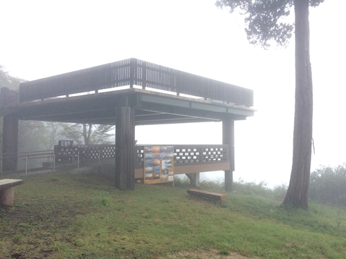 展望台に上ってみるとうっすら霧がでているのがわかりました。昨日からの雨があるので雲海になるのかもやというか単なる霧といえばいいのかわからなかったのですが、辛抱強く日の出を待ち続けました!