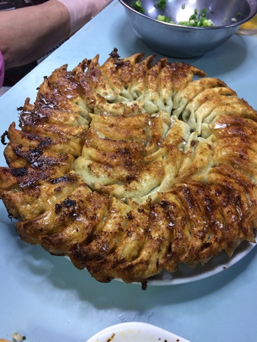 ビールをいただきながら餃子が焼きあがるのを待つのもこれまた一つの楽しみです〜!音がだんだんと変化してきますからね〜!そうして登場した餃子がこれまたおいしそう!最初の6人前はあっという間になくなりますよ〜!おいしい!
