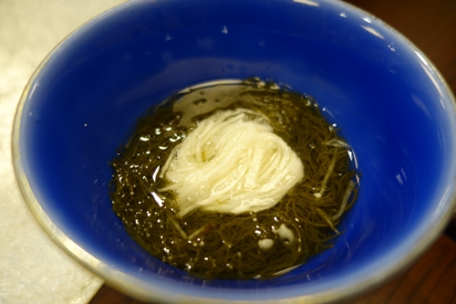 つづいてヌタともずくをいただきます〜!こういうお料理がいただけるのってうれしいんですよね〜!特に最近ぬたって食べれませんからね〜!