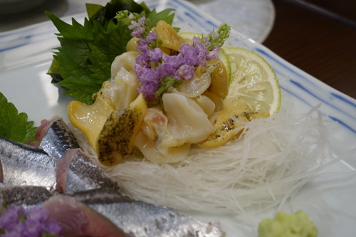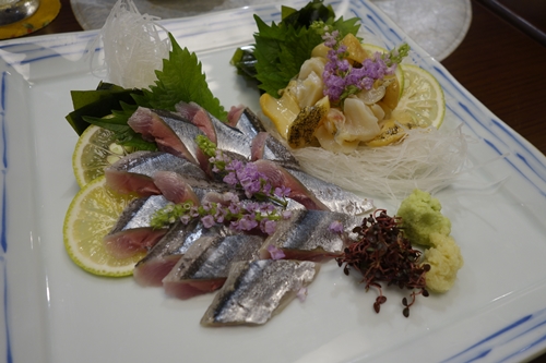 お刺身は北海つぶとサンマをいただきます!つぶ貝をいただくことはありますが、こちらのつぶ貝は大きくておいしい〜!風味もしっかりのこっていますよ〜!さんまもたくさん脂がのっていてとってもおいしいです〜!本当に素晴らしいおいしさです〜!