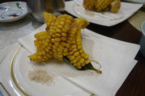 ここで気になったのがトウモロコシのから揚げ!天ぷらじゃなくてから揚げ!から揚げって珍しいな〜と思ってお願いすると、おいしい〜!これはおいしい!とうもろこしはから揚げでもいけるんですね!