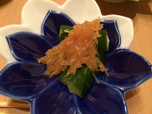 まずは梅水晶から!コリコリした食感がとってもおいしい!おそらくサメの軟骨だったでしょうか。おいしいですね〜!