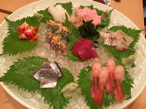 ここでお刺身が登場しました〜!盛り合わせにしてもらうとなんとトロが!ものすごいおいしそう!いただくと、、最高です!海老もとっても大きくて濃厚!幸せですね〜!さきほど残しておいたアジ胡麻のタレにつけていただくとこれまたおいしいんですよね〜!