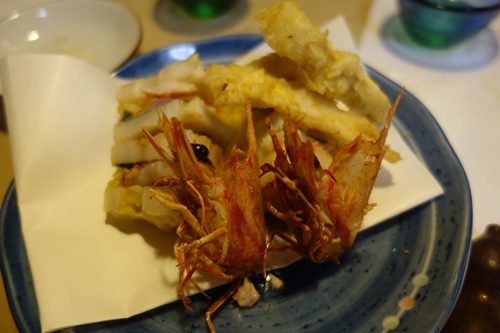 車エビと蓮根のはさみ揚げが登場しました!まずは頭からいただきます!この頭がこれまたおいしい〜!さっくさく!車エビの風味もすばらしいですね!本当においしい〜!