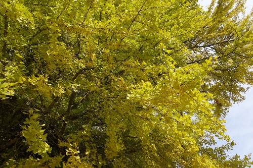 こんな大きな大木が見ごろを迎えて黄金を身にまとう姿はびっくりするほど高貴でそして光り輝いています。金色の衣を身にまとうのは今週末くらいでしょうか!