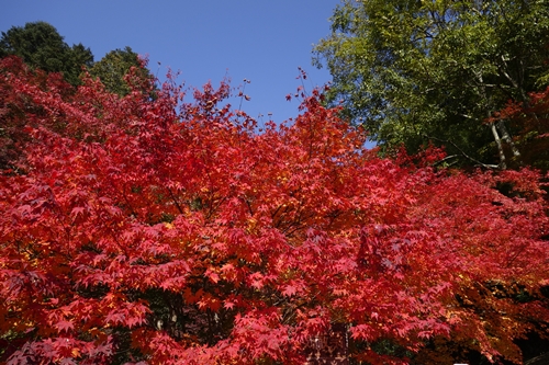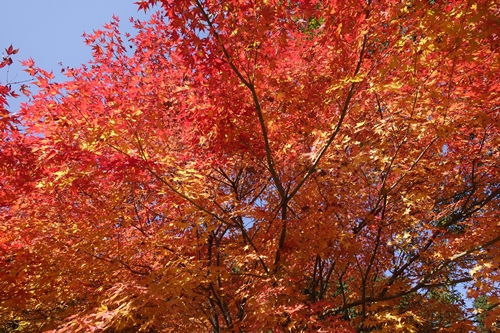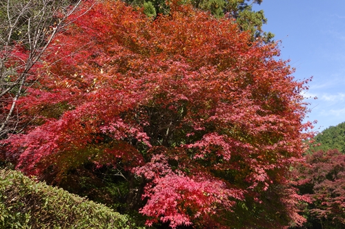 吉水園に到着してまずは入園料の200円を支払います。その入口付近にはすでに深紅にそまった美しい紅葉が!いいですね〜!