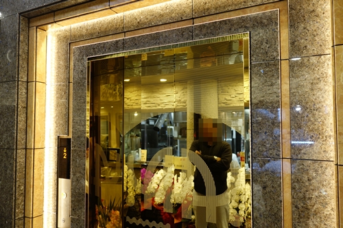 中に入るとそこにはガラス張りで清潔感ただようキッチンが!ここでお肉が調理されていくわけですね〜!この日は3階にあります個室をとってもらっていたのでエレベーターであがろうとおもったら、、、これまたエレベーターがものすごい高級感!すご〜い!