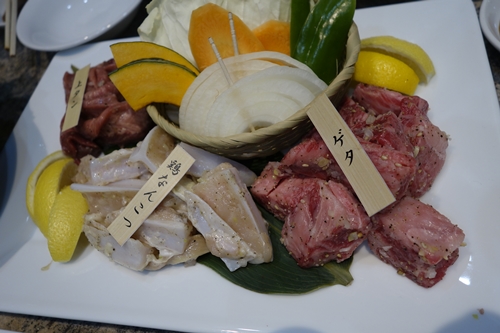 最初の一皿目は上タン、鶏なんこつ、そしてゲタという部分でした!ゲタとはカルビのあばらに近い部分だそうです。まずは上タンから軽く焼いていただきました!う、う、う、うまい〜〜〜!最高です!こんなすばらしいタンはなかなかないですよ!