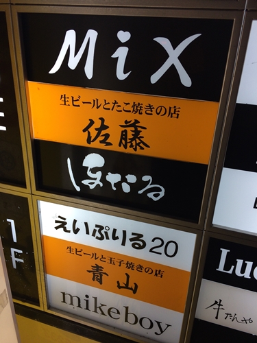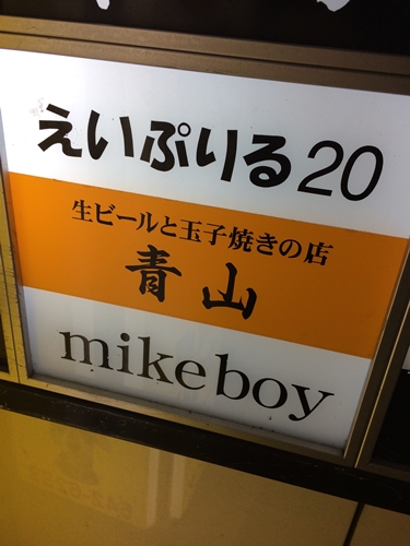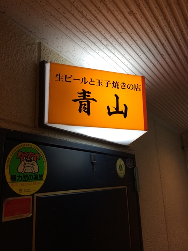 お店はたこ焼き佐藤さんと同じビルで1Fになります。お店の名前は生ビールと玉子焼きの店青山さんです。看板の上にあるえいぷりる20というお店も気になりますが、、、。笑