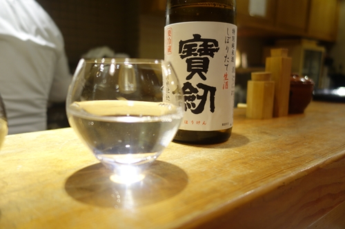 届いたばかりの地酒の宝剣を特別なグラスでいただいていると、、、