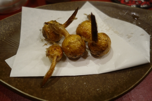 大将のおすすめのドイツワインをいただきながら、クワイを揚げていただきました。もうそんな時期なのか〜とおもいながらいただくと、、うまい!