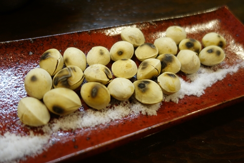 つまみに銀杏をお願いしました!銀杏をつまみながらぐいぐいと日本酒を〜!やっぱりおいしいですね〜!日本酒は!
