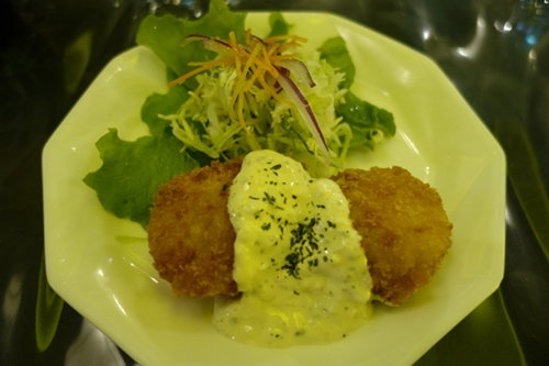 まずはタコのフライから!とってもおいしいですね~!いい味付けしてあるのでとってもお酒にあいますよ~!